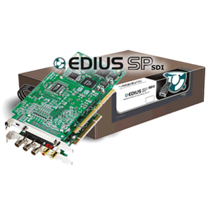 The EDIUS SP-SDI system features hardware-based video overlay and high-quality video I/O circuitry. It interfaces with professional and consumer video equipment including HDV, DV, and all analog cameras and decks. It supports professional video equipment with component video and XLR balanced audio I/O as well as frame-accurate RS-422 VTR control and external reference sync input connections.